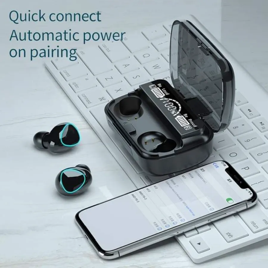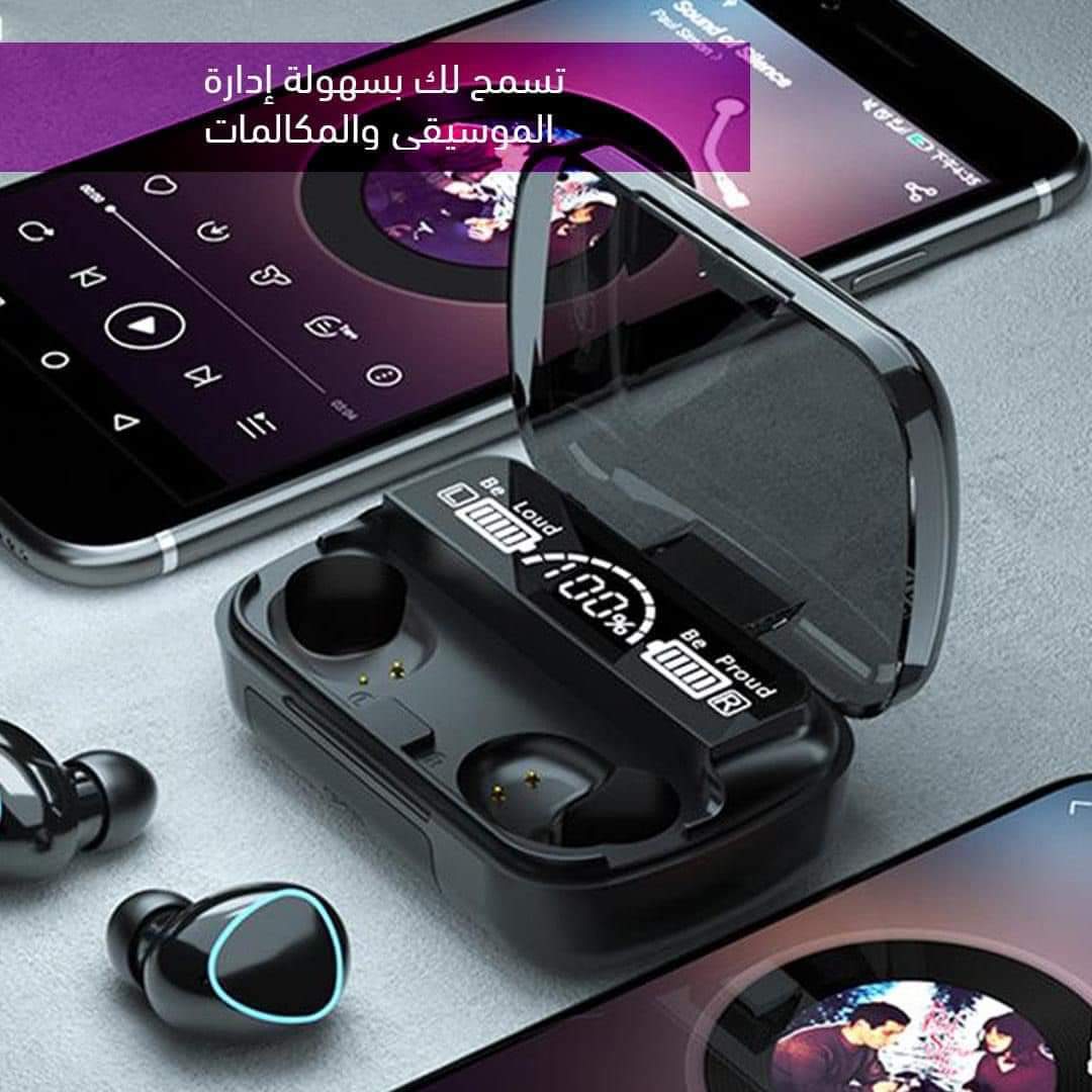 سماعه M10 🚨🚨 الاصدار الجديد مميزات السماعه 💥 ايربودز x باور بانك لشحن الهاتف 💠 تعمل على هواتف الأندرويد و الأيفون 💠تعمل باللمس. 💠أحدث إصدار بلوتوث 5.1 💠 يمكن الرد على المكالمات و تغير الأغنية عن طريق لمسها 💠مقاومة للماء و التعرق بشكل كامل و الاتربة IP68.❤️ 💠ثبات عالي بالأذن لتناسب الرياضات.❤️ 💠مزودة بمانع الضوضاء الخارجية.❤️ 💠ب سعة 2600 مل أمبير ـ POWER BANK إمكانية استخدامها لشحن الهاتف 💠تقنيه الصوت محيط 9D عالية الجودة مناسبه جدا للألعاب. 💠شاشة رقمية ذكية لمعرفه مستوى شحن.❤️